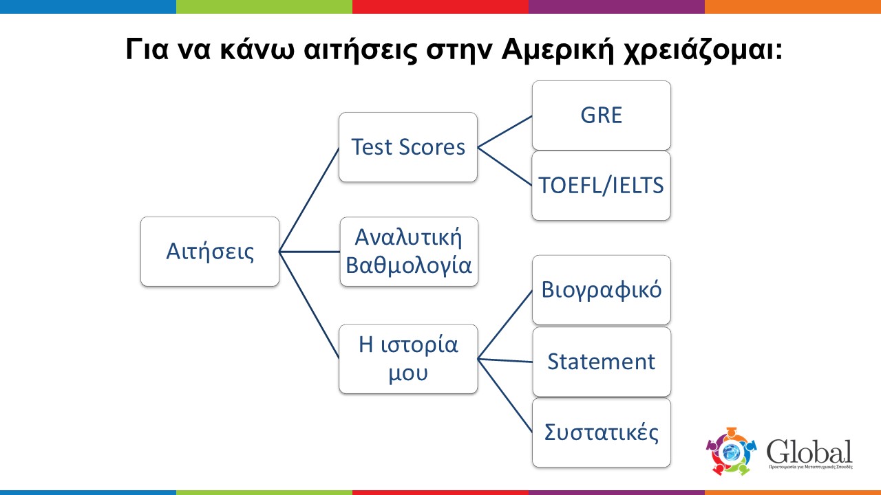 - Τα scores απ τα test GRE (για sciences & engineering) ή GMAT (για Business Schools)